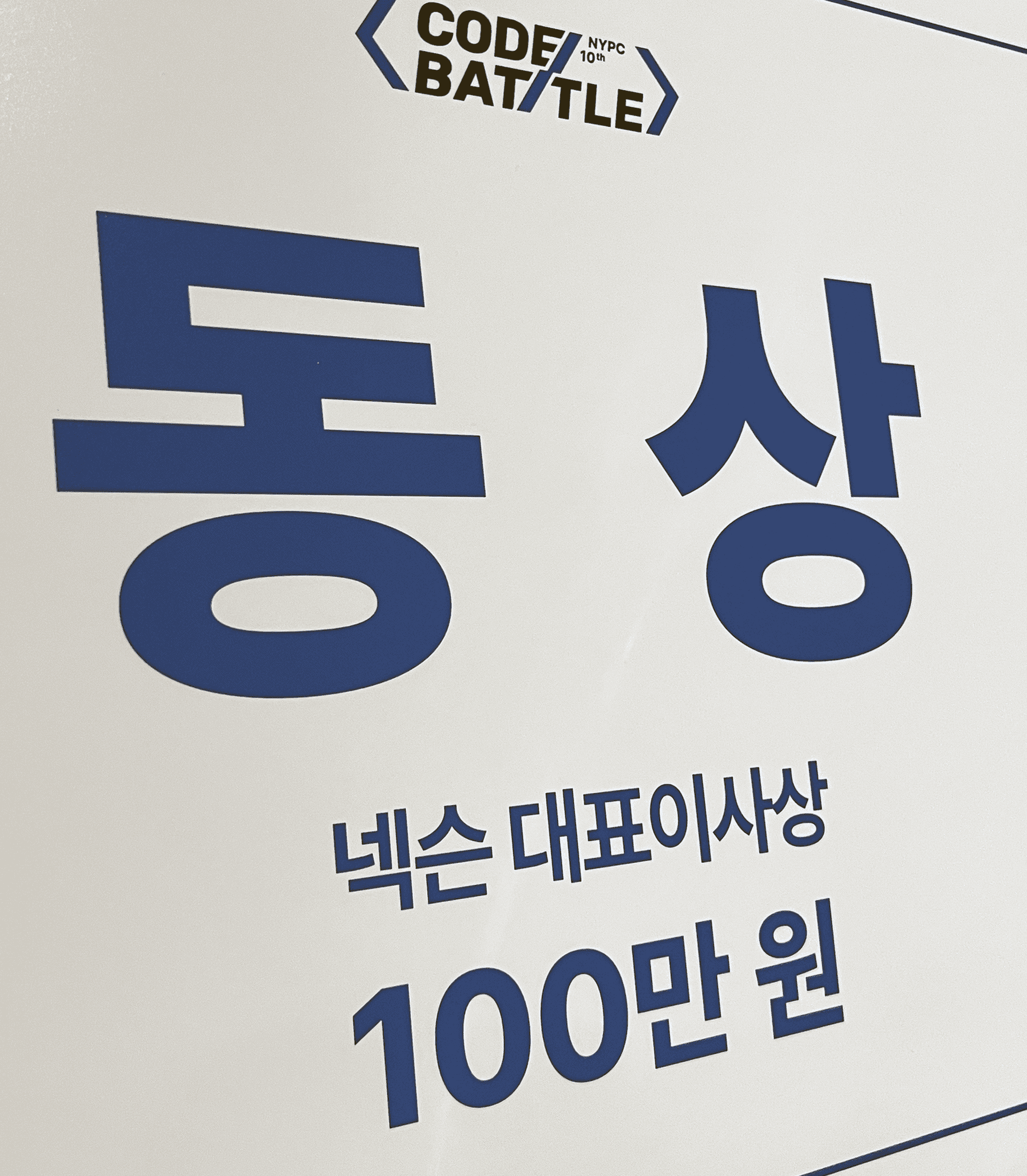 Our team, consisting of myself and Donghyeon Kang (aren227), secured the Bronze prize at the NYPC Code Battle finals, held at Nexon in Pangyo. This is the fourth prize, for the 6th-10th places.